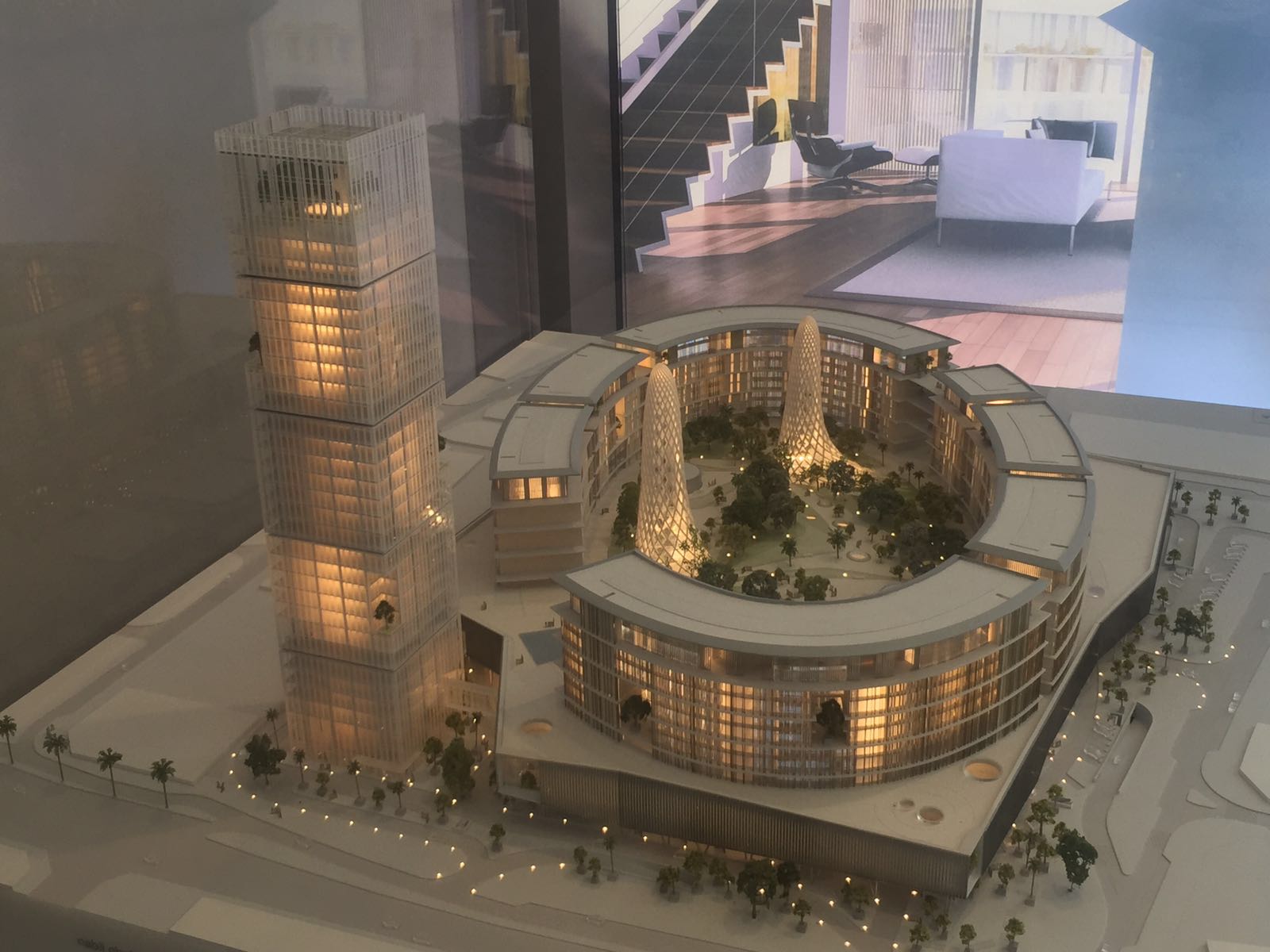 وقد جرى ربط القبة الطبيعية التي تغطي المدينة الترفيهية بنظام هيدروليكي يُفعَّل أثناء العرض لرفعها وكشف تفاصيل المدينة الترفيهية أسفلها، كما تم تنفيذ إضاءة داخلية وخارجية قابلة للتحكم، تُظهر مراحل البناء المختلفة ومرافق المشروع المتنوعة بأسلوب ديناميكي واقعي.
